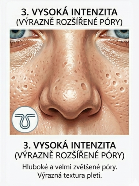 Intenzita 3 – Výrazne rozšírené póry